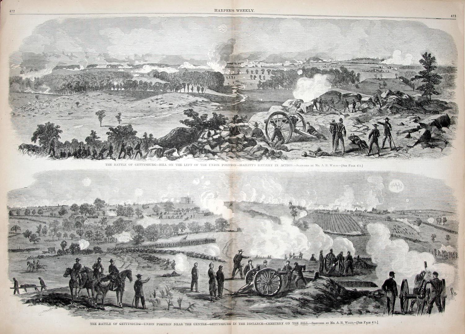 ON pages 472 and 473 we publish two fine illustrations of the BATTLE OF GETTYSBURG from drawings by our special artist, Mr. A. R. Waud. The best description of the battle which we have seen is the following from the Philadelphia Age, and we do not think our readers will be sorry to have it in full, long as it is: